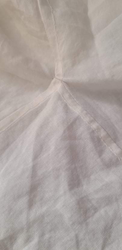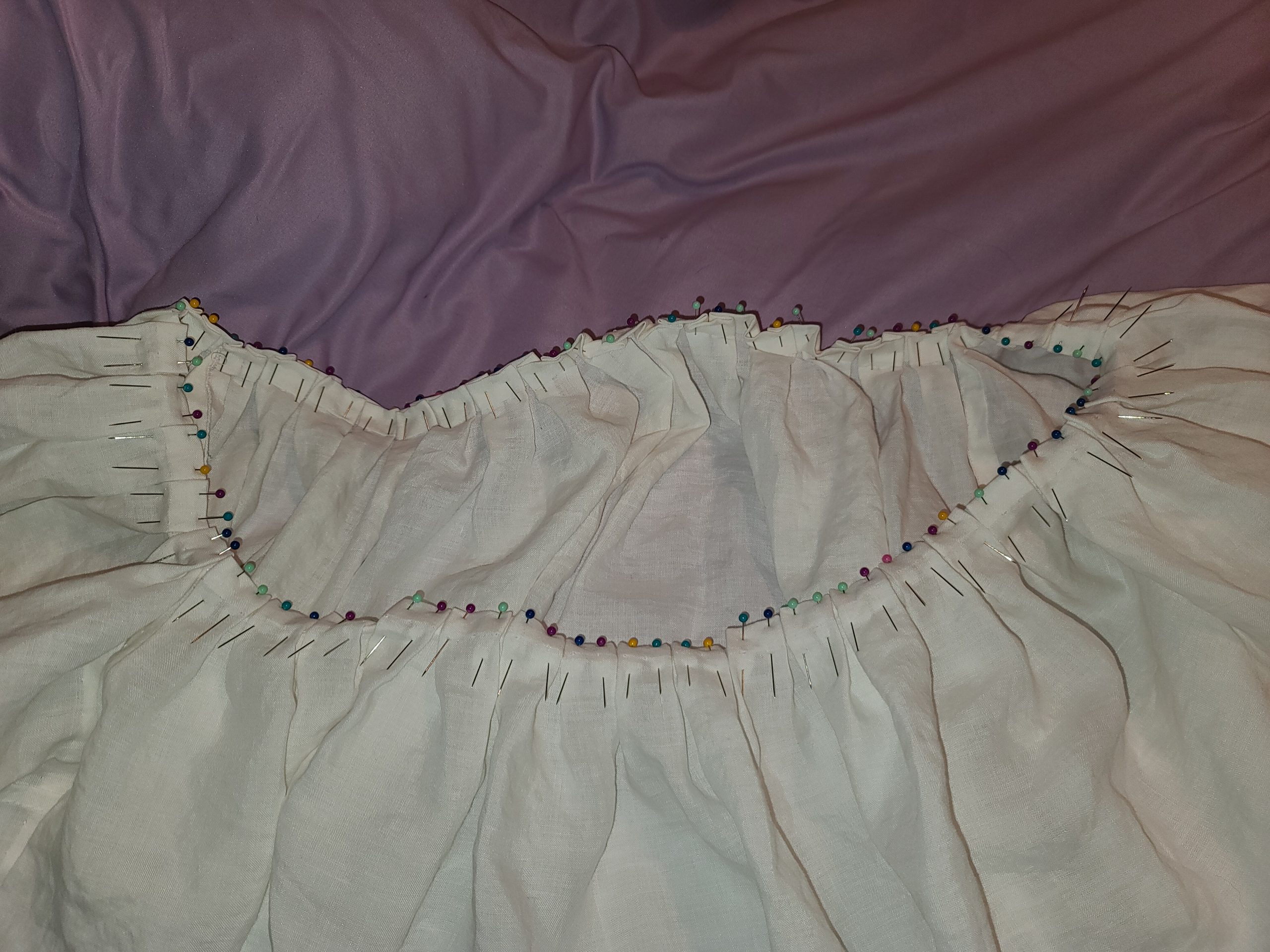 Step seven was stitching down my pinned pleats with a folded band of linen.